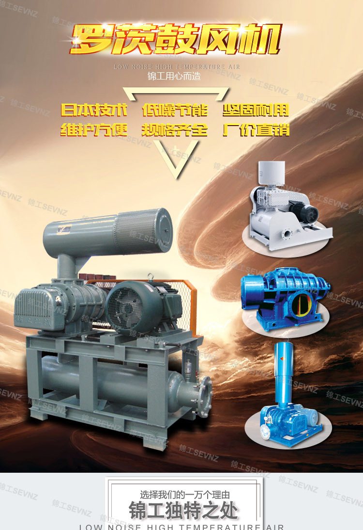 密集型羅茨鼓風機是根據普通三葉羅茨鼓風機衍生而來,密集型羅茨鼓風機的的選型與普通羅茨鼓風機的選型是一樣的,在選型、使用、維護方面和普通三葉羅茨鼓風機是一樣,但是密集型羅茨鼓風機有自己的特點: