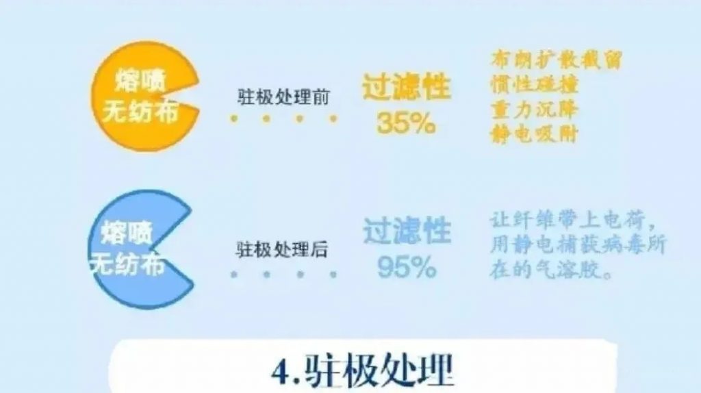 有人說,如果沒有口罩測試儀器,如何知道口罩的過濾效率?一個簡單方法,就是看口罩靠近大腿時能否把長長的腳毛變得直立起來!駐極處理能夠增加口罩靜電吸附的能力,駐極母粒能夠讓靜電保持時間久。