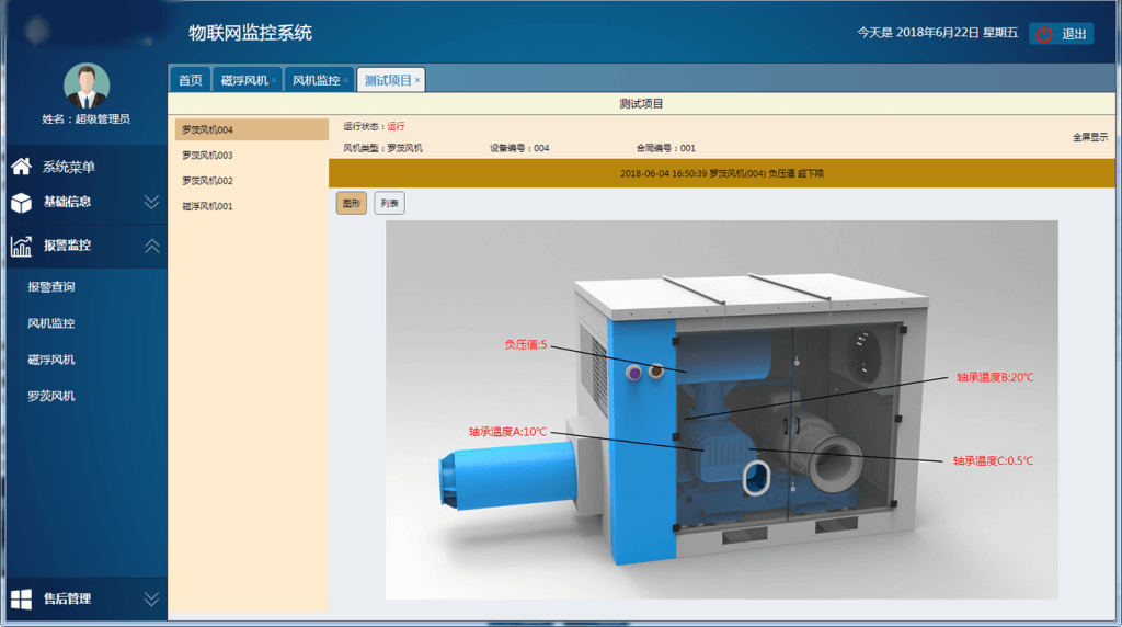 廠家服務監控中心能夠記錄保存得到的電流、電壓、功率、振動、溫度、噪聲等數據,結合羅茨風機強度、壽命和系統運行情況,可以開展羅茨風機經濟運營分析,為用戶羅茨風機運營提供建議,進行風險管控。